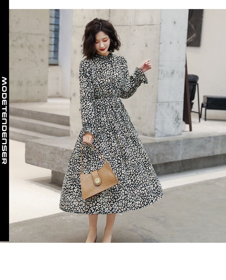 blomstret kvindekjole forår og sommer ny langærmet elegant sort