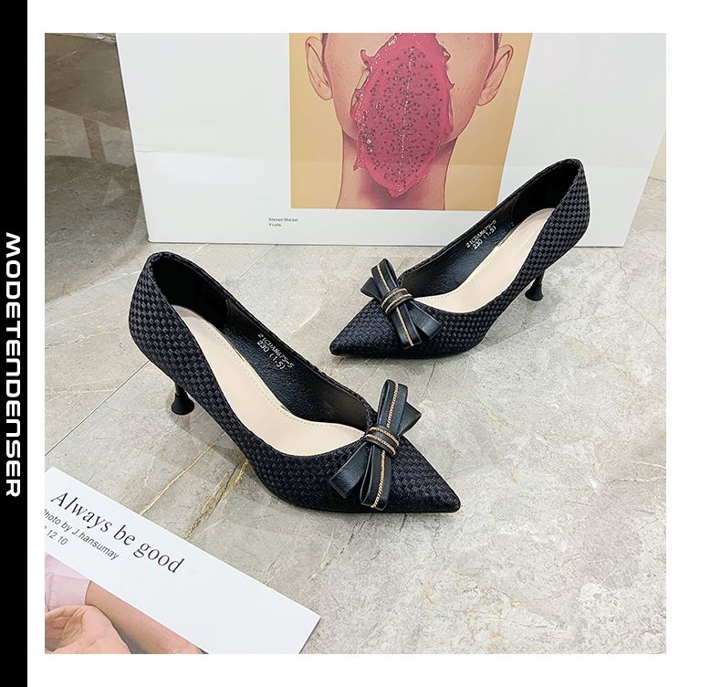 bowknot høje hæle kvindelig stiletto sexet spids grå