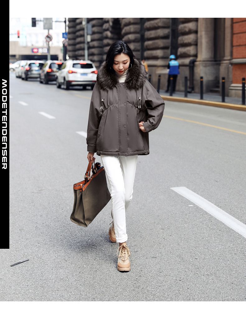 denne kvindelige plysdekoreret bomuldsjakke har tyk polstring for at give maksimal isolering og sikre, at du holder dig varm hele vinteren. denne kvindelige bomuldsfrakke er designet i lang tid for ikke kun at beskytte din krop mod regn og vind. ved hjælp af et stort plys dekorativt betræk kan du beskytte dit hoved og ansigt mod forskellige faktorer og sikre, at du forbliver tør og behagelig uanset vejret.