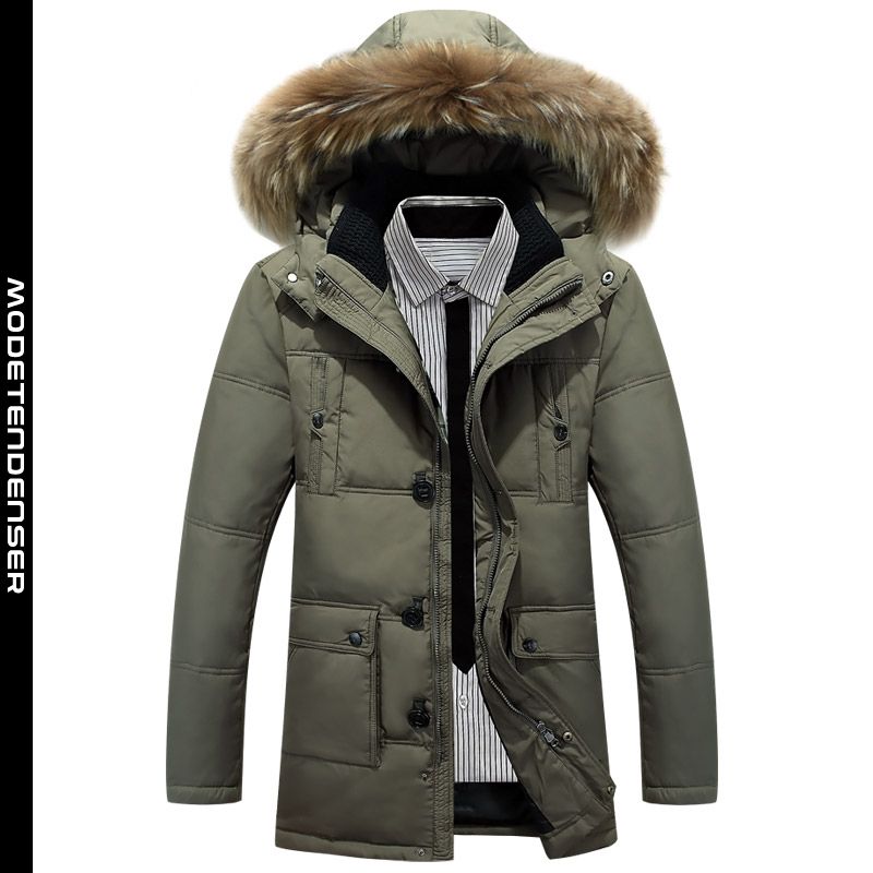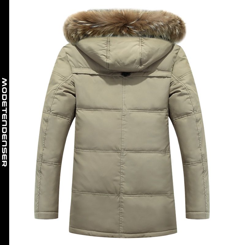 denne dunjakke til herrer kan modstå slud, sne, regn og vind i størst omfang. den har forbedret beskyttelse og komfort. den er fyldt med hvid andedun og har en mellemlang stil. den er velegnet til let at bære i ekstremt kolde dage. varme.