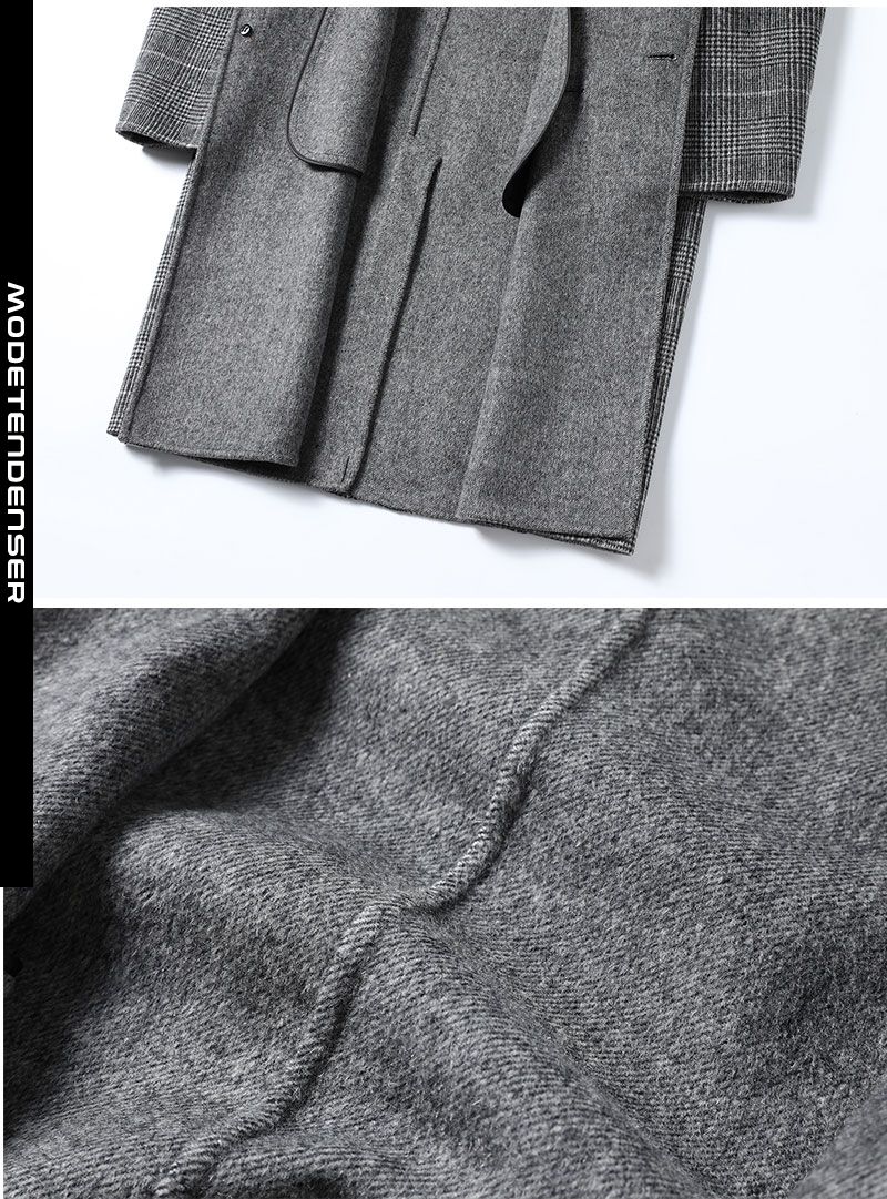 dobbeltsidet mænds uldfrakke rutet lang uldfrakke sort