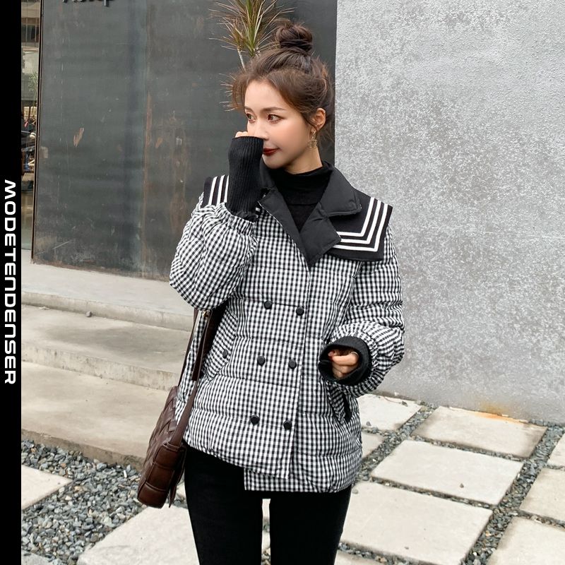 dunjakke til kvinder kort dobbeltbrystet marineblå
