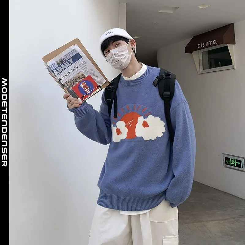efterår og vinter tyk sweater herre sjov kreativ udskrivning blå