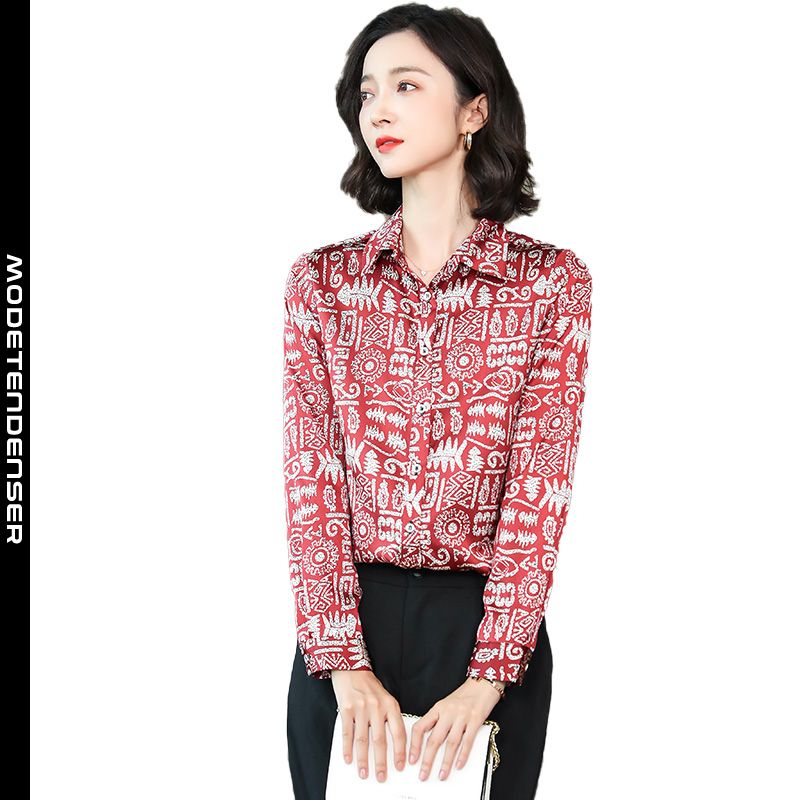 et slående, men stilfuldt tryk giver denne smarte bluse al originalitet. vi kan lide delikate effektstoffer med superblød mat finish. monteret skjorte med klassisk knapkrave, lange ærmer og firkantede manchetter med et tryk. dette er trøjen i dit skab, en tidløs, du kan se den overalt.