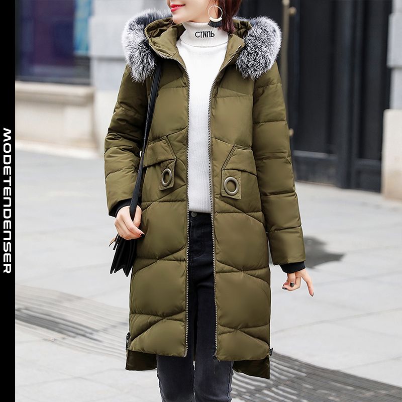 elegant dunjakke til kvinder lang pelskrave mode hærgrøn