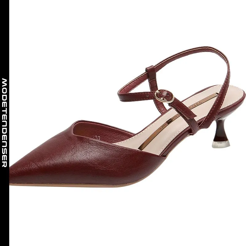 elegant højhælede spidse bløde læder damesandaler vinrød