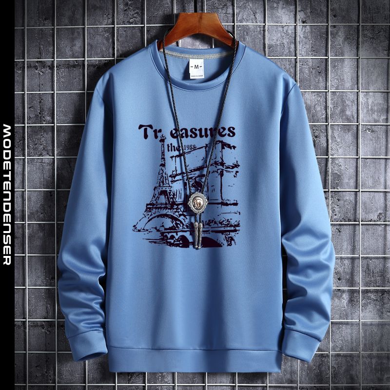 forår og efterår trykt herre sweatshirt moderigtigt sort