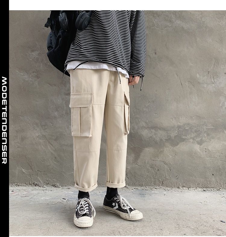 forår og sommer løs lige stor lomme afslappet herrebukser værktøj khaki