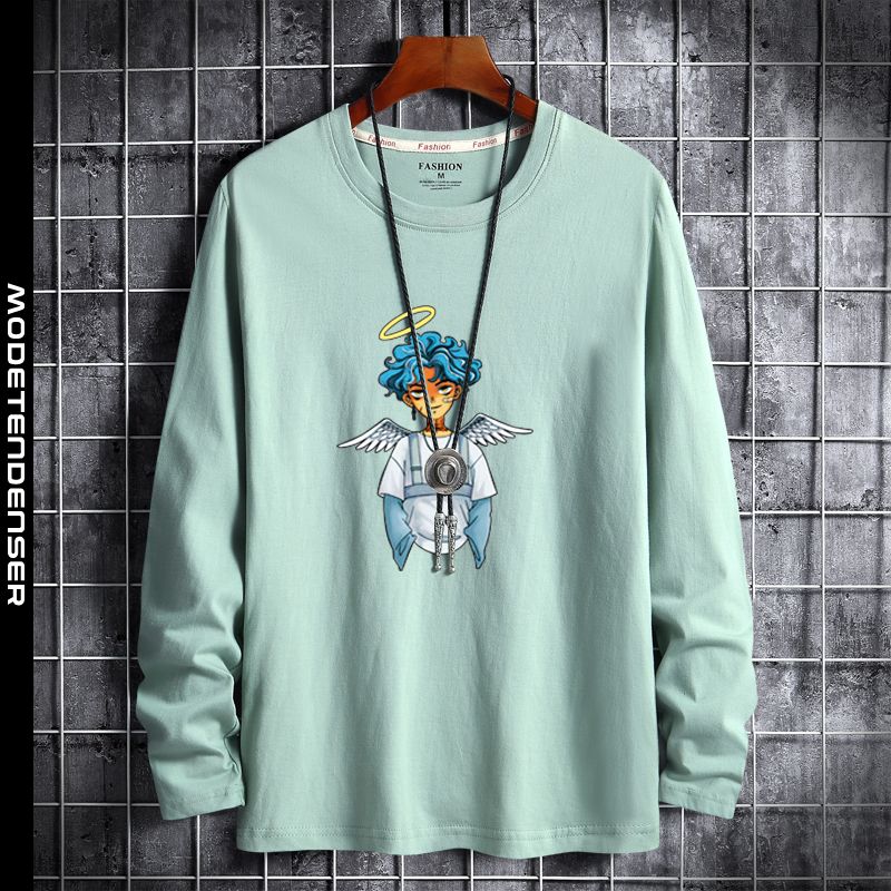 forår og sommer trendy mænds bomulds langærmet t-shirt mandlig drengegrøn