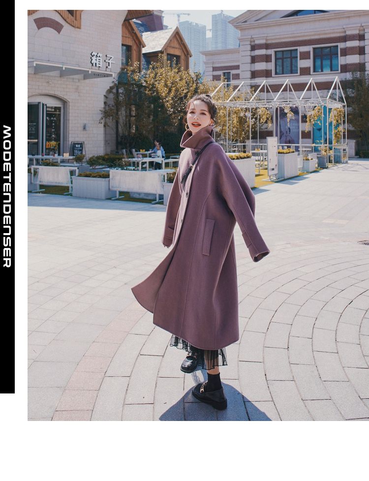 forår og vinter uldfrakke til kvinder lang løs og elegant lilla