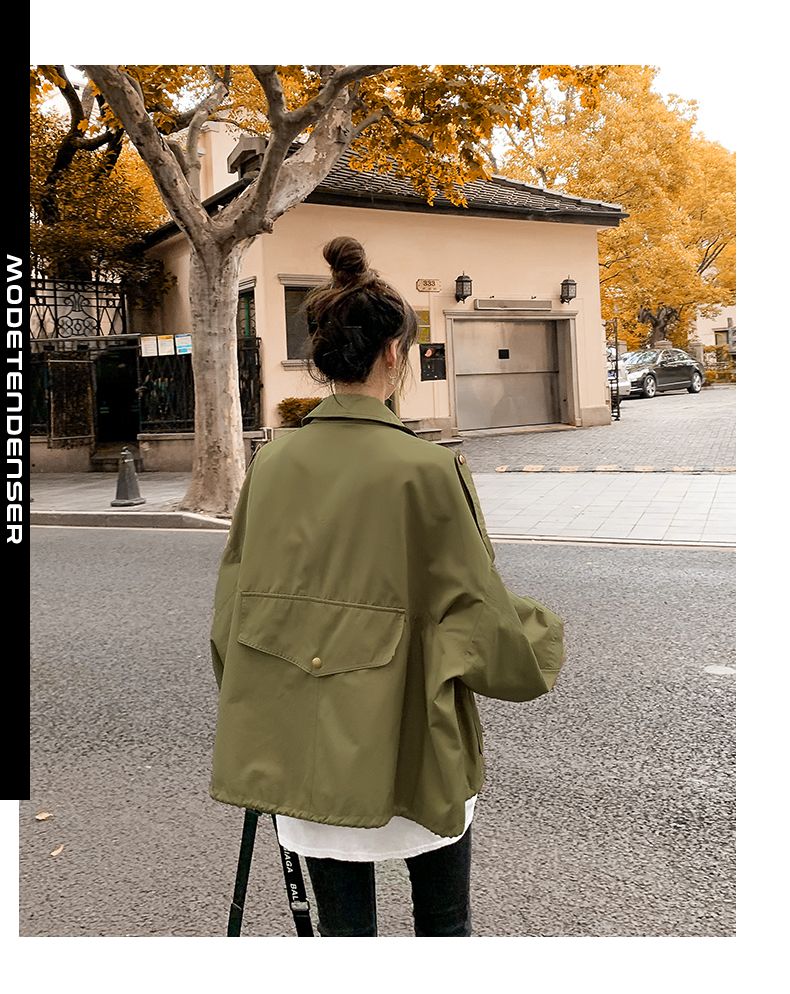 fritid kort kvinders vindjakke militærvind stor lommeværktøj hærgrøn