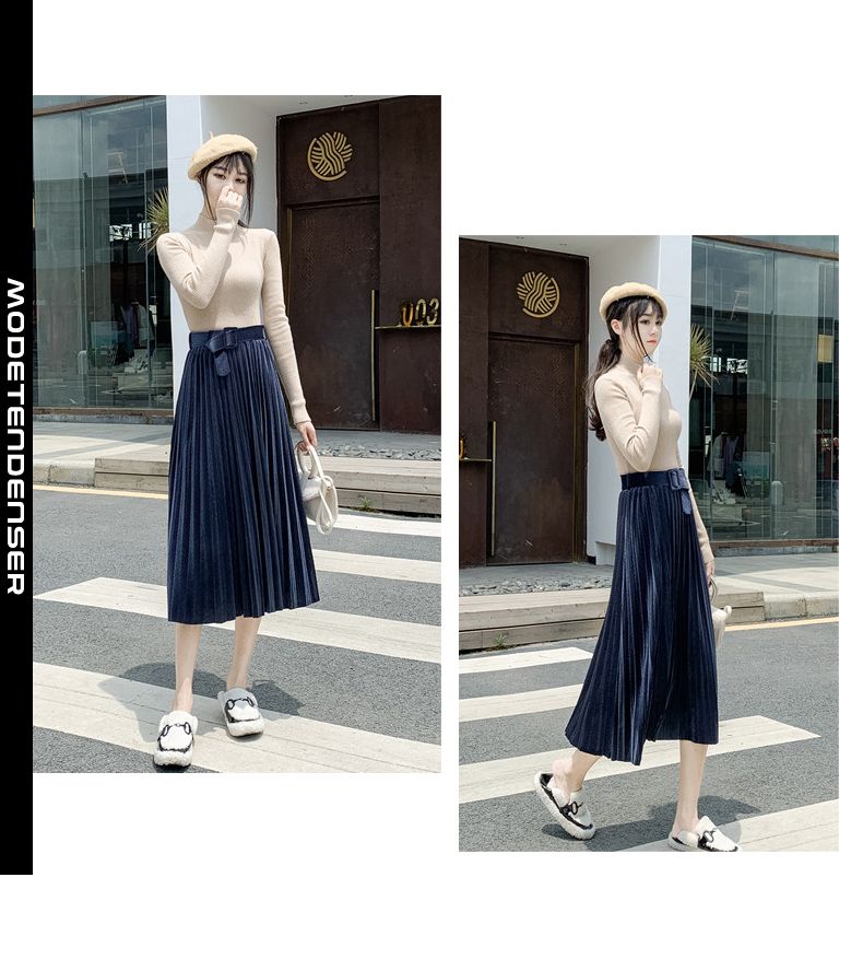 guld fløjl nederdel kvindelig forår og efterår høj talje lang stil med bælte mørkeblå