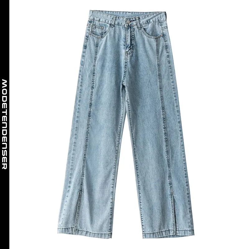 højtaljede brede ben lige løse kvinders jeans tidevand blå