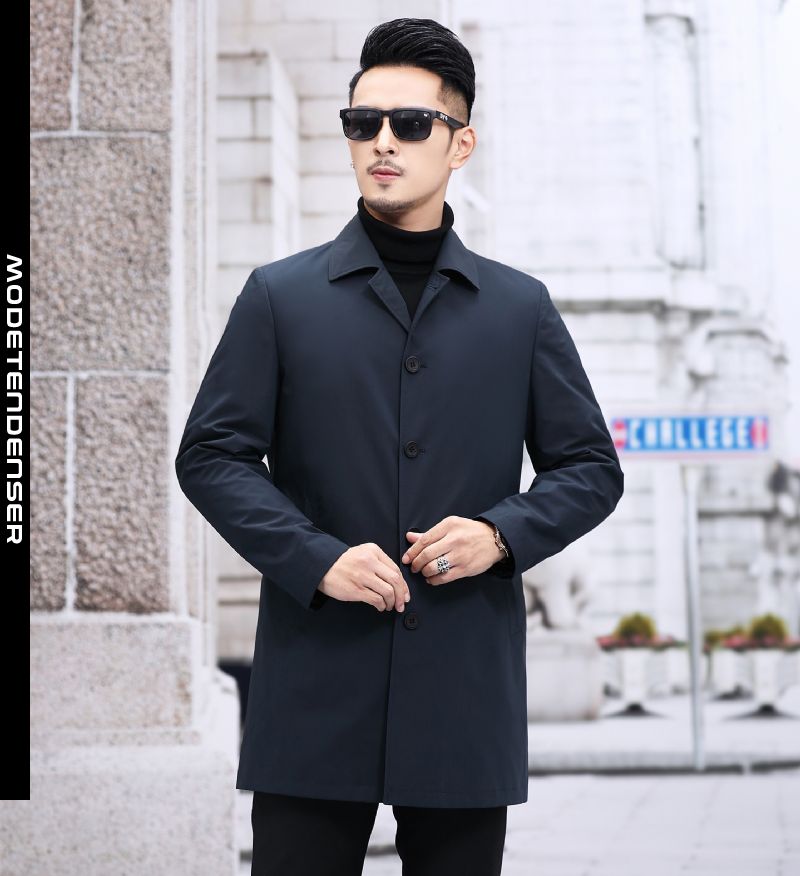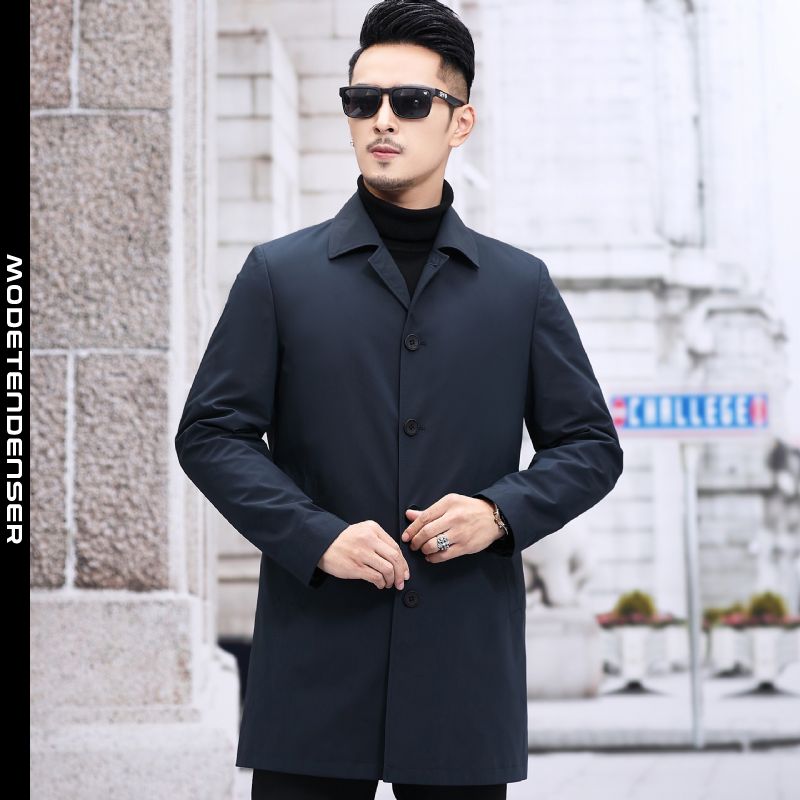 klassisk forretningsjakke til mænds vindjakke lang revers jakke slank mørkeblå