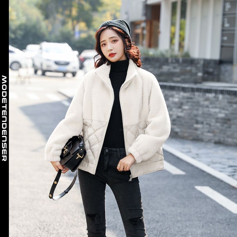 kvinders polstret jakke kort mode lynlås fløjl frakke brun