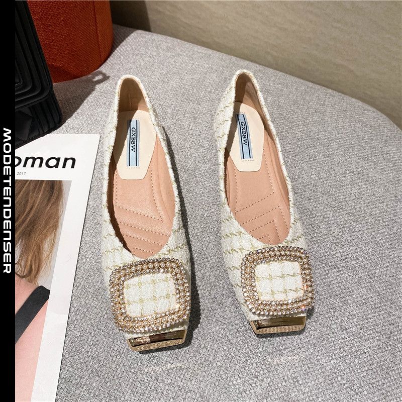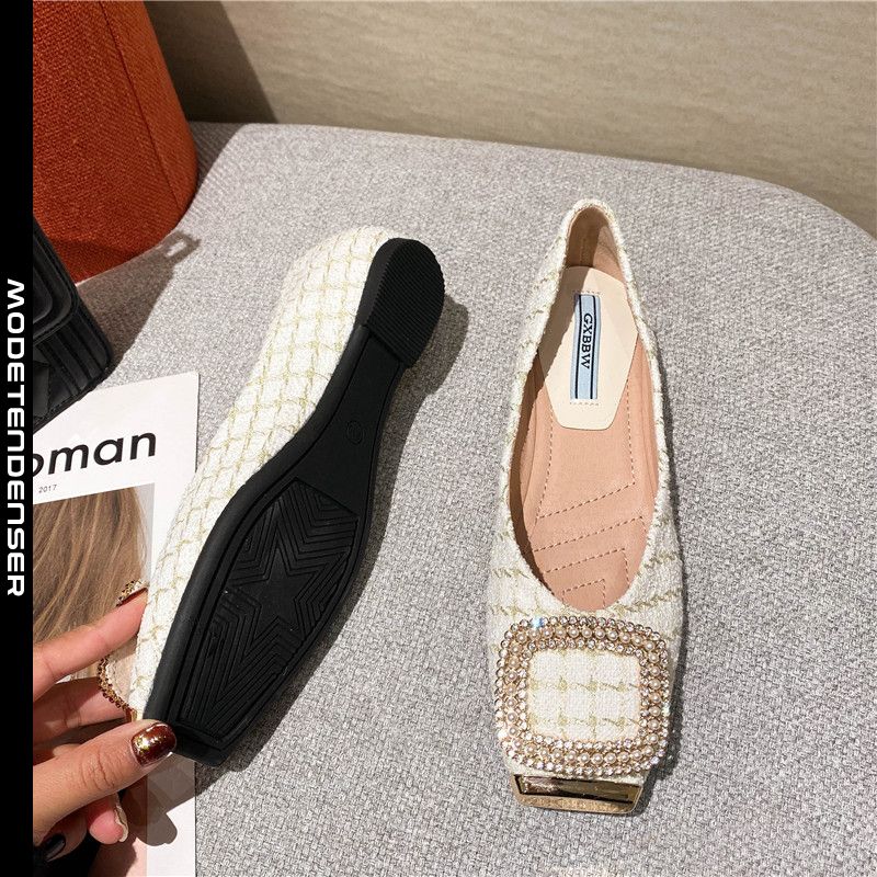 mode rhinestone spænde firkantet tå blød sål kvinders flade sko hvid
