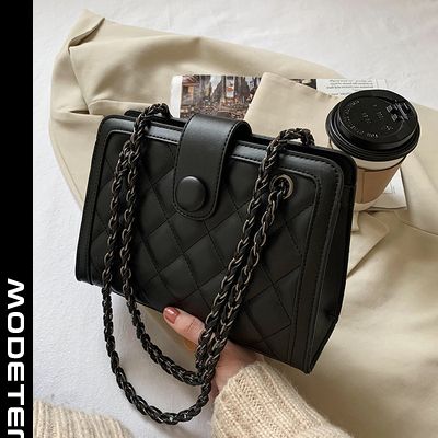 moderigtig skuldertaske kvindelig kædestrop crossbody taske bæltespænde sort
