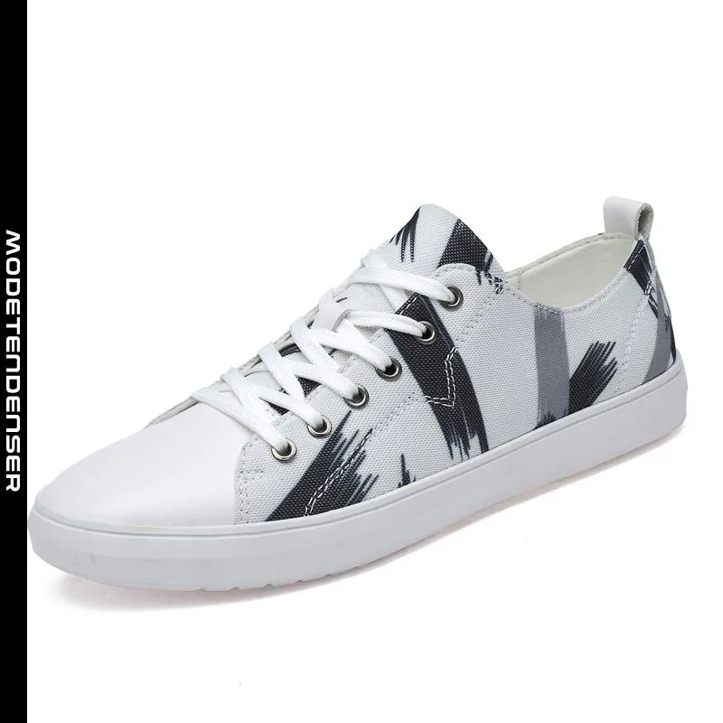 moderigtige sportssko til mænd flade lærred casual sko graffiti ren hvid
