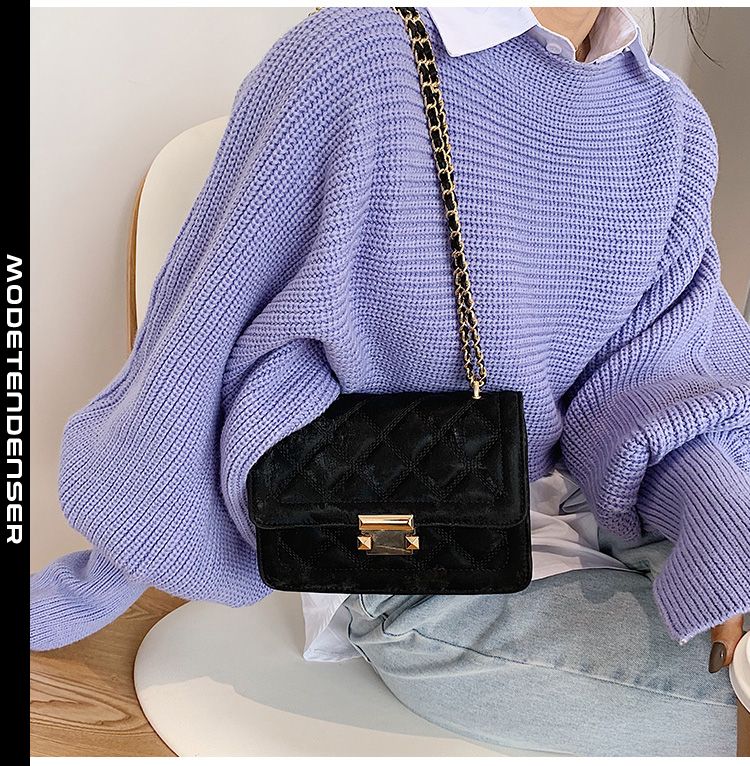 moderigtigt skuldertaske kvinder messenger bag kæde rem spænde sort
