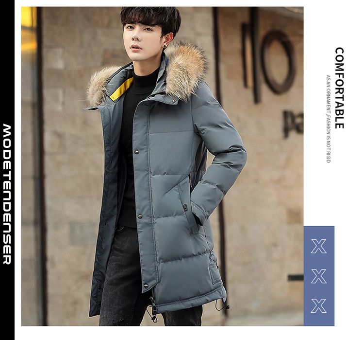 pelskrave vinter lang stor størrelse herre bomuldsjakke tyk hættejakke med lang hætte sort