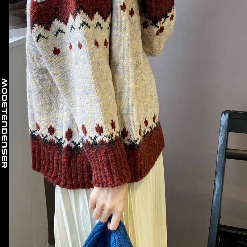 denne afslappede modetrøje har retro og kontrasterende detaljer, uanset hvordan du bruger den, den bliver uforglemmelig. foldbar høj krave og manchetter, forneden er dekoreret i kontrasterende farver, og overarmen på overkroppen er dekoreret med iøjnefaldende farveblokerende mønsterindsatser, der viser en unik mode. par det med dine yndlingsjeans for at skabe en afslappet og moderigtig stil.