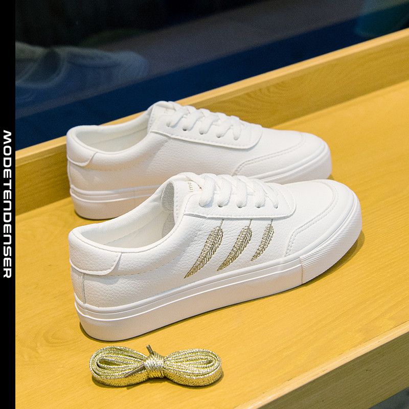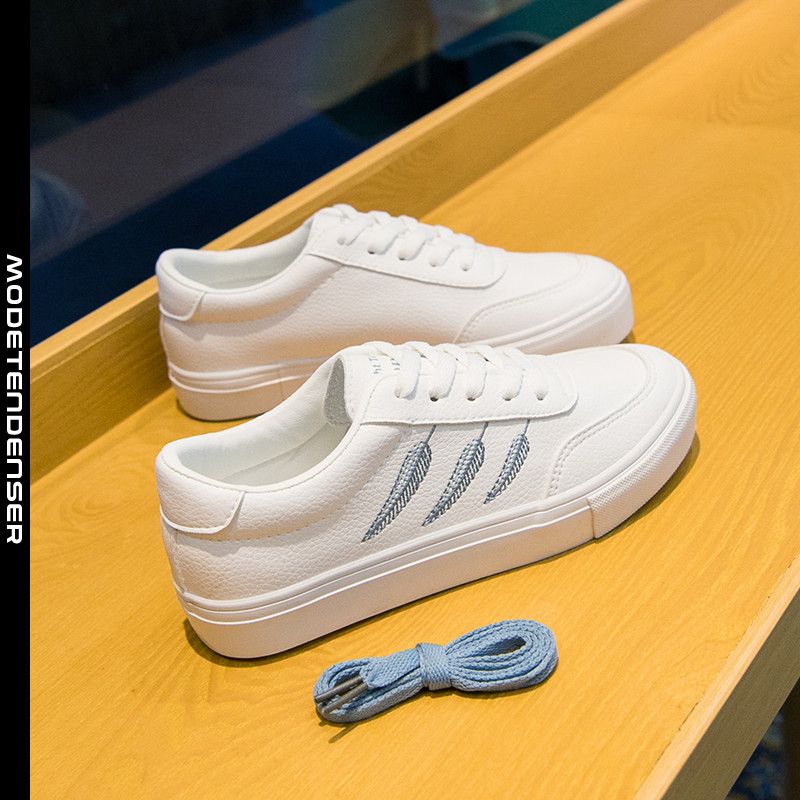 små hvide sko snørebånd flade sko kvinder broderet hvid