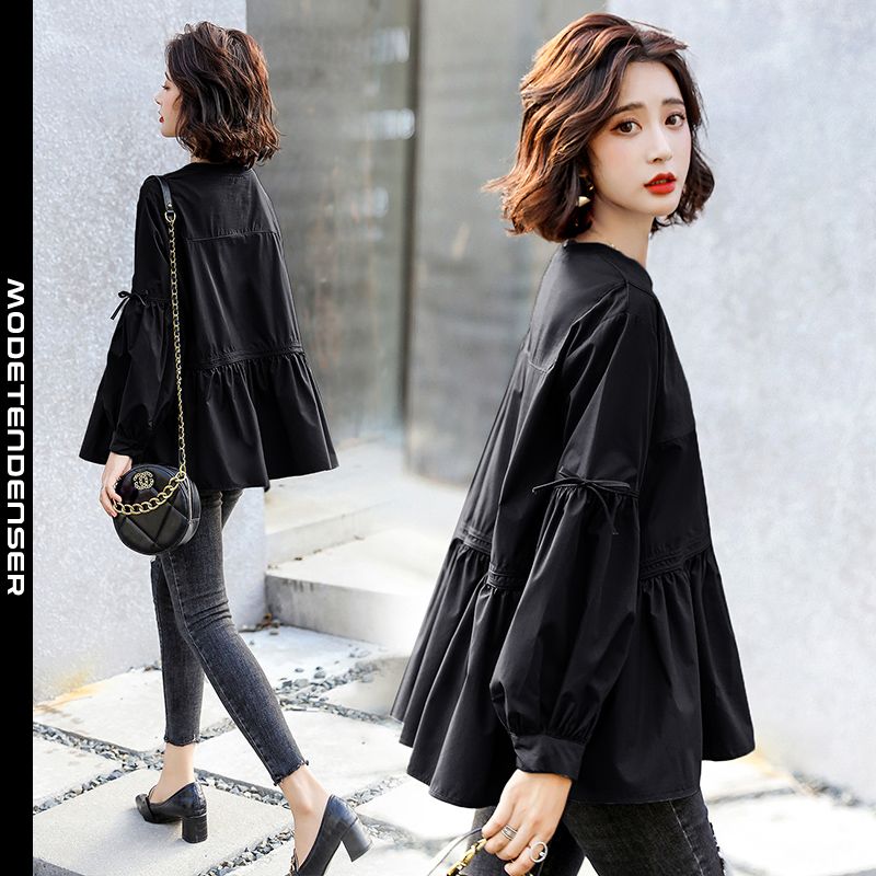spring og efterår løst plisseret lanterne ærme bluse grå