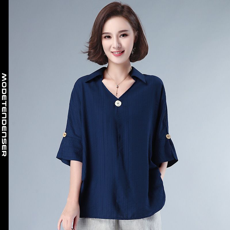 t-shirt til kvinder sommer løs ensfarvet mode blå