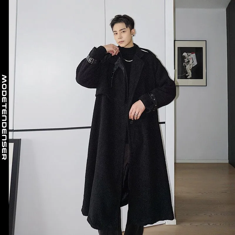 denne lange sorte trenchcoat har et enkeltbrystet design, et stilfuldt reversdesign, og ærmerne er dekoreret med jernknapper. denne lange silhuet er lavet af uldstof og har en struktureret parasol med naturlige læderknapper. bordhætten kan hold hætten vendt opad, eller du kan gå på vandreture på vejen med vandrestøvler. og hold dig væk fra dit syn.