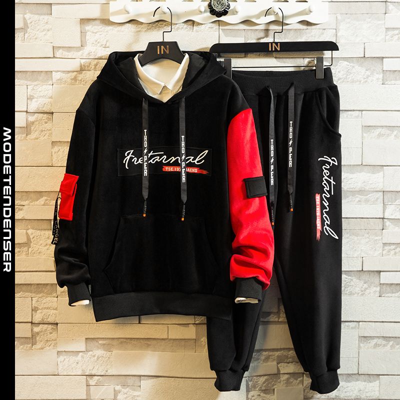vinterguld fløjl hættetrøje til mænd trendy sort