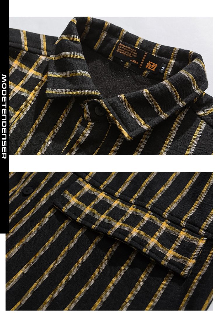 vintertykk løs stribet herre-skjorte multilomme sort
