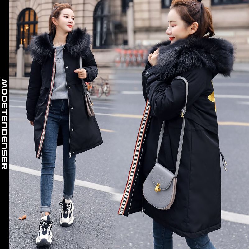 winter women's parker hooded jacket broderi fashion fur collar trendy black